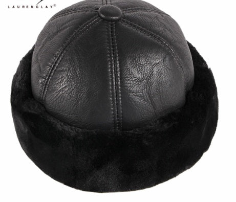 Winter Leather Warm No-brimmed Melon Hat Old Man Hat