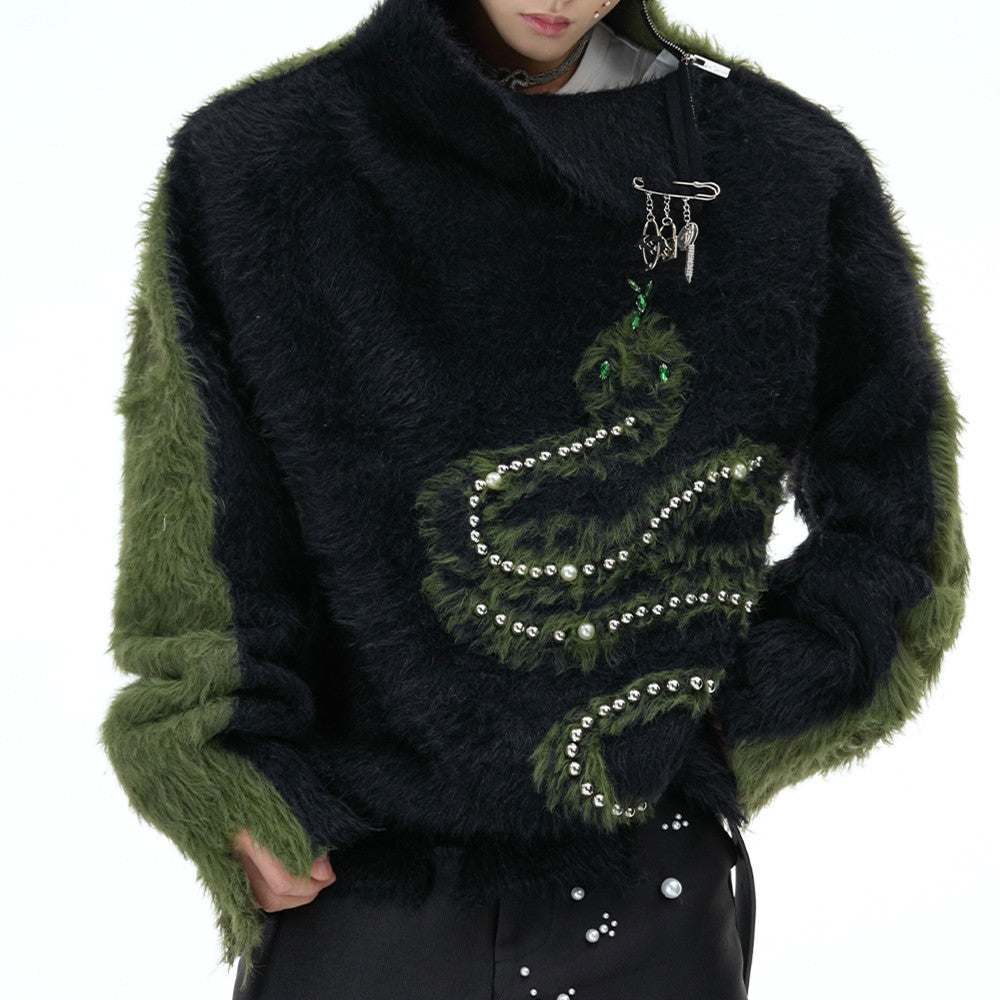 Year Of The Snake Pearl Embellished Sweater High Neck